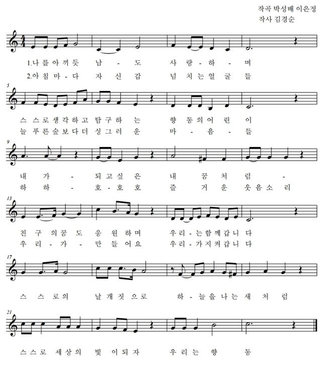 소나무과의 줄기가 흰색인 나무로 추위에 견디는 힘이 강하듯 밝고 건강하며 씩씩한 어린이가 되기를 나타냄.
